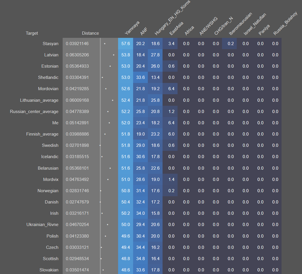 >>986577 Я предполагаю что трёхсторонняя смесь по типу мордва(с огромной степью как у меня) + красноборский(но нужно выбирать менее монголоидные образцы) для обогащения EHG + Даргинцы для обогащения CHG должна дать самую большую неоямную днк, возможно порядка 80%.