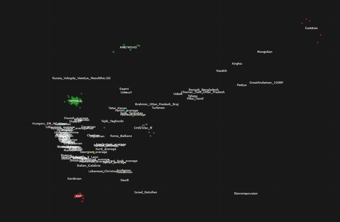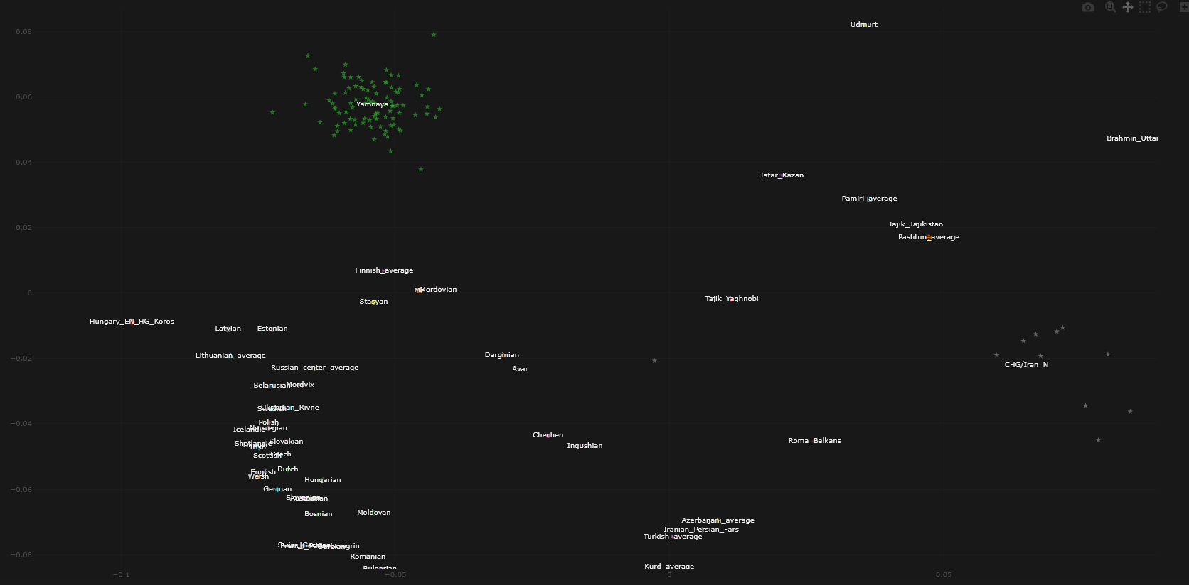 >>985939 И что? Китай - большая страна, до ханьской колонизации на юге вообще другие люди жили. Да и вообще графики PCA не отражают картину в полной мере, просто полезны для ориентировки.