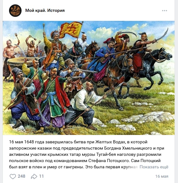 Даже 200 крымских татар, зачем-то вырядивших в трофейные польские латы в 1516 году, подчистую поубивали казаки князя Вишневецкого на Западной Украине во время их очередного набега, "так, что ни один не ушел".