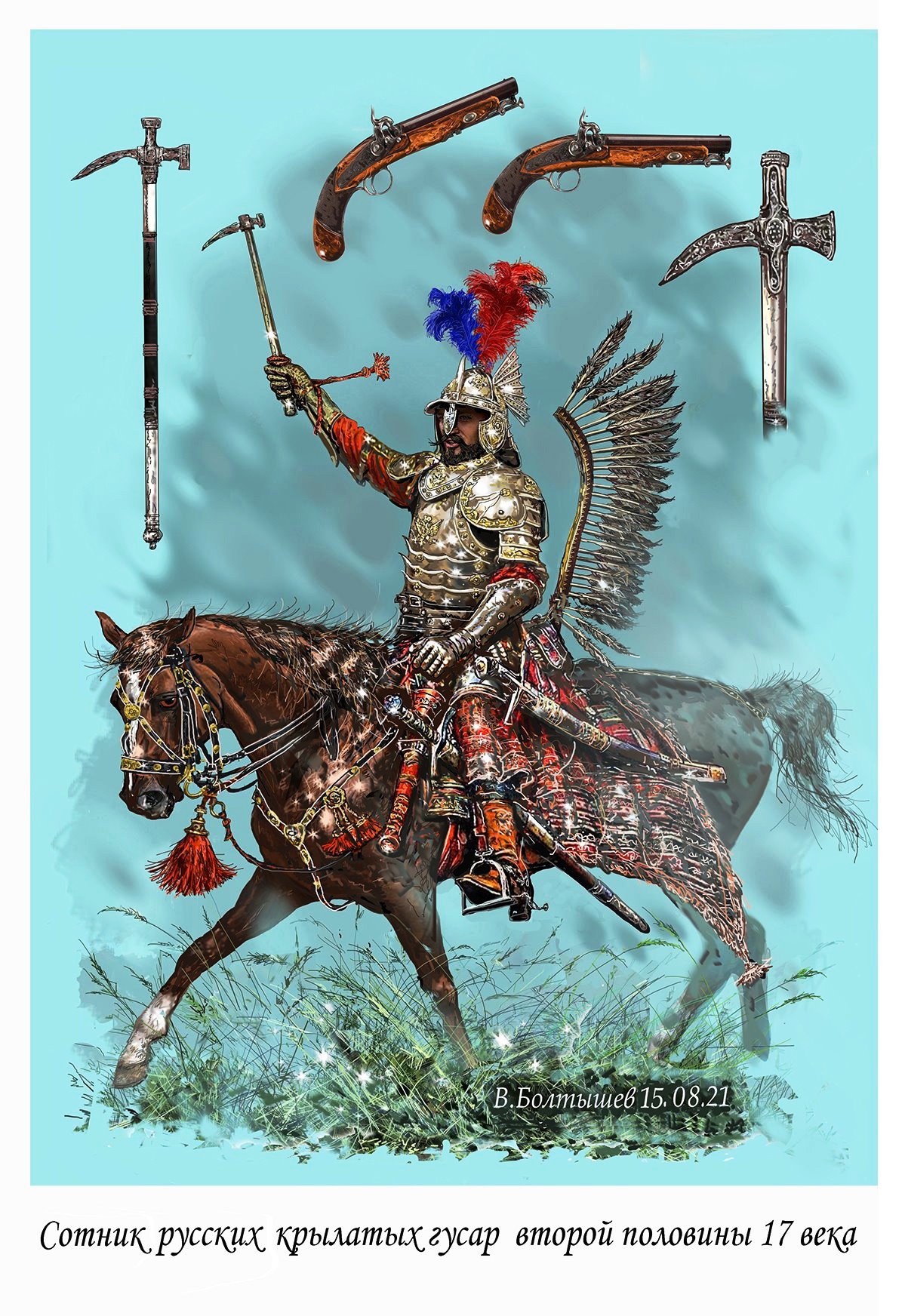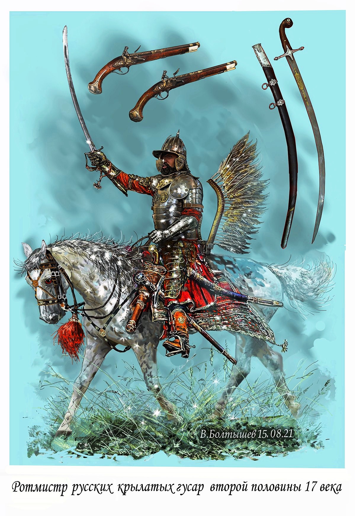 В панегирике Баторию, написанном в 1612 г. философом и теологом Анджеем Любинецким, состояние польской рыцарской кавалерии до реформ короля-венгра описывается следующим образом: «Во-первых, седла на конях были такими высокими, что скрывали оруженосца-мальчика, а еще бывали они окованы бляхой, что весило столько, сколько три нынешних седла. На оруженосце же был панцырь — защита такая, в которой рыцаря можно убить не только копьем, но и нагайкой, и сверх того тарч тяжелый, обычно украшенный крылом или султаном из павлиньего пера, все это великой тяжести, и малейший ветер мог рыцаря замучить и коня осадить. К тому же копья, или древа, были такие тяжелые и большие, с прапорцем аж до рукояти, что весило все это больше, чем теперешних два копья. Иных вещей шутовских, которых польское рыцарство и во время войны и мира по старинке придерживалось, и вспоминать не хочется».