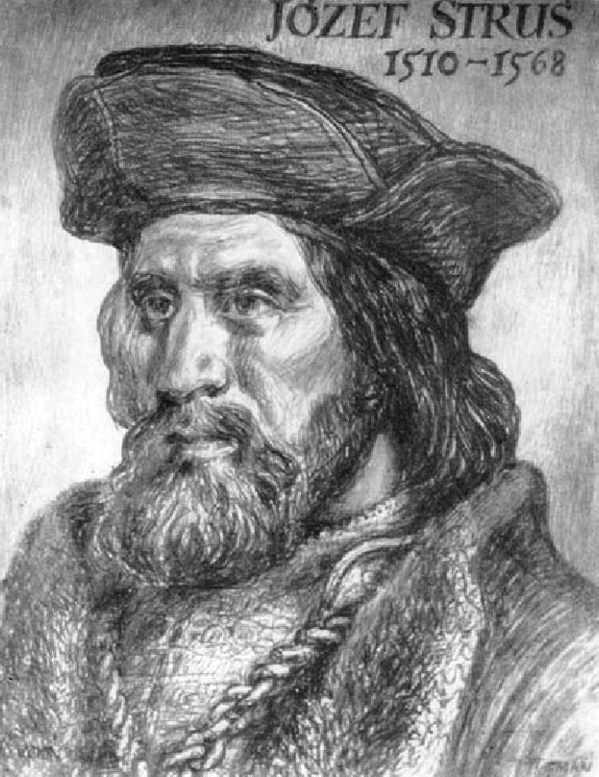 Юзеф Струсь (Józef Struś, 1510 - 1568) - Прославленный врач (этнический поляк), сделавший серьезный вклад в кардиологию. Был польским профессором медицины в Падуе (1535–1537) и личным врачом польских королей.