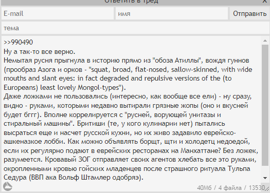>>1008220 Вероятно, во всех русских городах была власть олигархии (типа "300 золотых поясов Новгорода"), котоаря приглашала иностранные ЧВК, типа Аскольда и Дира, Рюрика и т.д. Поляки потом приглашали угров и французов, и их власть была ограничена только ЧВК, как у того же Александра Невского, хотя он был гениальный командир. Норманизм в не про то, кто был главой чего-то, он про общее развитие. Шлецер, шпион, который хотел вывести в Немеччиу русские летописи, а так же факты про исследование Сибири, напридумывал, исходя из своего тевтонского (исторически - антиславянского) сборища, что Россия, и славяне вообще - недочеловеки, которые управлялись германцами, против этого был Байер, и даже Миллер, который служил ему поручителем, хотя он тоже презирал славян и русских, но он захотел остаться здесь, чтобы исследовать Россию, а шпион Шлецер его подставил, еще подставил князя из тевтонских рыцарей, забыл фамилию, который ему летописи вывозил, кажется Шумахер. Ломоносов их поэтому ебашил. Кстати, греки, типа Капниста, великого поэта с территории Украины, были всегда за русских, как и армяне. Потомки той самой Византии, и даже итальянцы всегда помогали нам, а немцы всегда были с какой-то подлянкой, гадливостью, с принебрежением. Пра-какая-то внучка Капниста была очень лояльна СССР, греки и итальянцы работали над космической и атомной программой (вообще итальянцы были пионерами в изучении ядерки).