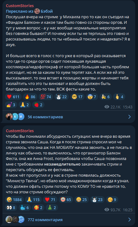 Всех приветствую. Здесь мы обсуждаем Михаила Андреевича ака CustomStories. Главного фембой-косплеера всея Руси, главного энжойера попы 2В, почётного лороведа Dark Souls, трайхардера, гигачеда, и просто интересного человека. С его подачи разгорелась самая лютая война в ру-фандоме DS, и до сих пор горят угли того пламени от жоп двухофагов. Ну и, все вы знаете как он неровно дышит к главному фанату Двушки... Обсуждаем, делимся мнениями, инсайдами, критикой.