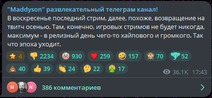 Ничего в отношении мэда к своей аудитории не изменится. для него это тупо ресурс с которого стабильно выкачивается внимание. Даже на донаты уже в целом похуй ему стало, но как вернется начнутся ауки свинские.