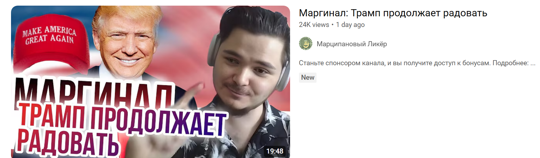 Причем блудить не очень хорошо получается, в силу клинического идиотизма. Он каждый месяц выучивает новое слово, но забывает посмотреть значение. Слово мая 2025го года у него было "постфактум". "в постфактум" "на постфактум" по 10 раз в каждом ролике