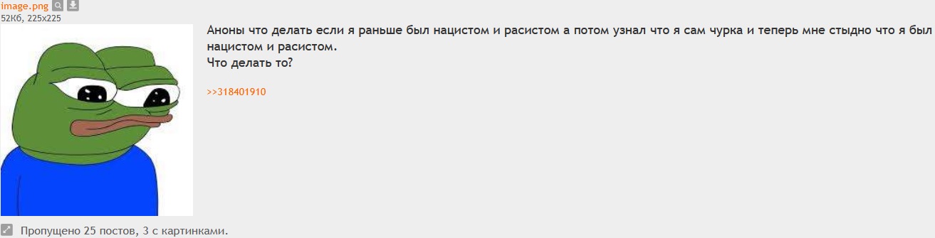 >>1026409 >захотел поднять бабок с хохлов? >доходы наоборот упали, и все ради чего? Кукич меняет свои "взгляды" как перчатки. Потому, что никаких взглядов у него нет. А вот ненависть к русским у него вполне настоящая, воспитана в ещё раннем детстве родителями-новиопами. Когда появились риски блокировки денежных переводов из РФ, он решил совместить приятное с полезным - занялся пропагандой против русских и переключился на украинские донаты.