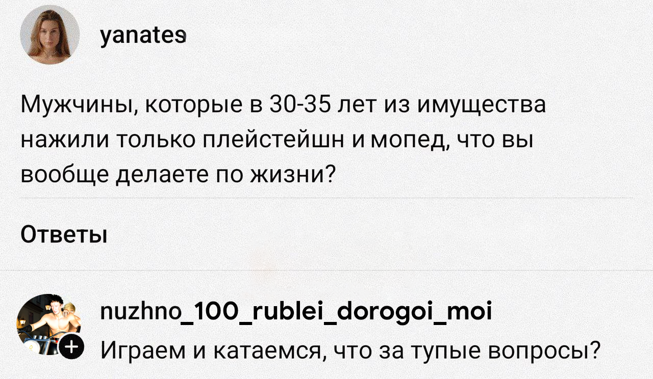 Хейтерки прикрученные к стульям пердильным, жду от вас фото с супом где вы на фоне двухэтажных заброшек в новеньких рубашках с длинными рукавами. Докажите что у вас есть жизнь.