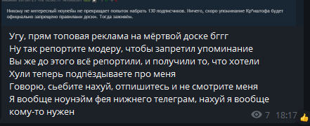 Никому не интересный ноунейм не прекращает попыток набрать 130 подписчиков. Ничего, скоро упоминание Кр*иштофа будет официально запрещено правилами доски. Тогда заживём.