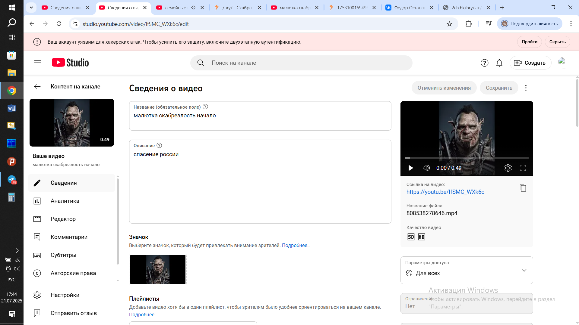 Публично посрались они 12 числа, 15 числа кто-то слил деанон. Канал тоже пустой, как и тот что выше. Малютка — любимое обращение станка к скабру. Видимо, первый видос почти не выстрелил, и было принято решение его бустануть. Это сработало.