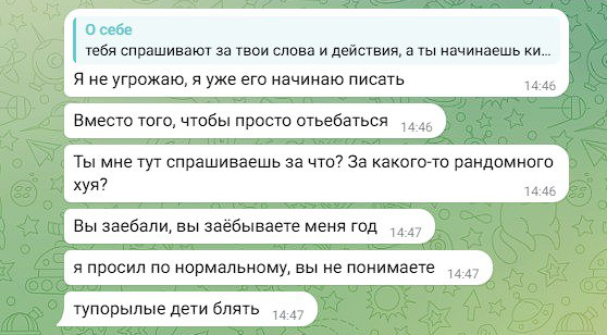Подумайте, русские. Подумайте о том, что ублюдок в чье образование с детства родители вкладывали деньги не смог сдать егэ и поступить на бюджет хотя бы в том же смоленске. Подумайте, почему с дипломом юриста переводит статьи в википедии с чатом джипити не может зарабатывать деньги в рф. Он интеллектуал, он написал одну статью для вестника международного юридического института (смоленский филиал) Подумайте и устыдитесь тому, что в вашей стране нет места такому человеку.