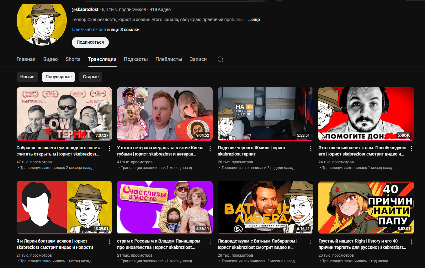 и это всё зрители, донатеры, “друзья канала”. все — выжжены, вымазаны, обосраны. а Скабр? В нищей Грузии, рулетку крутит