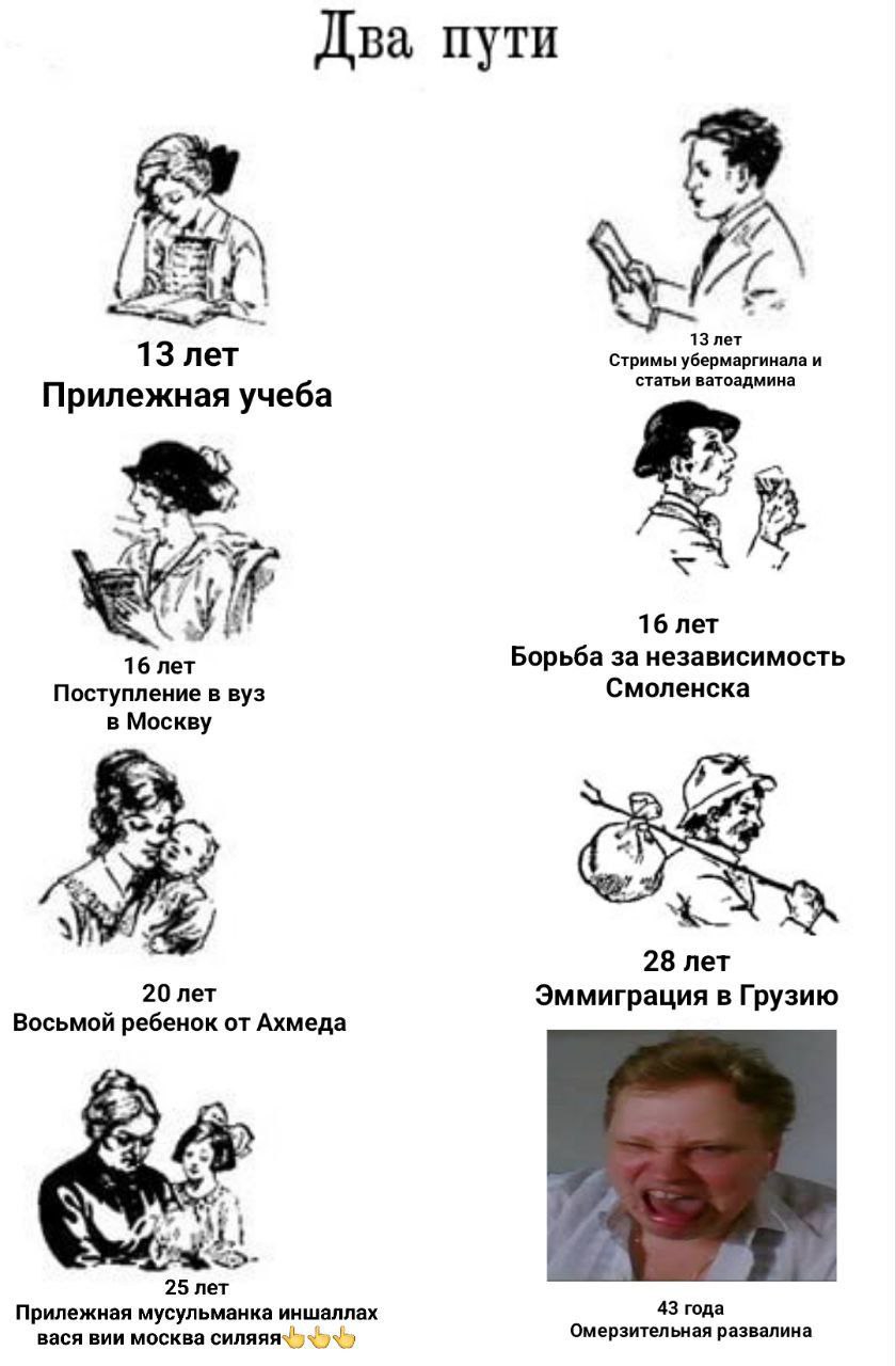 >>1082189 >предки скабра служили в армии РИ. Была земля, картошка и мясо >захотели жить лучше >пошли на царя >их дети стали жить в приюте где из еды только тесто и свиная кровь >пошли на ВОВ >те кто выжил оброс жирком. Стали жить лучше >образовалась некая дистанция юристов. Дед, отец, сын, дочь >сын понял что живут они слишком плохо >уехал в Грузию где буквально за еду работает пидорасом у клоунов Что должен вынести нормальный человек из истории рода Остаповых? Предавать плохо. Новая метла не значит лучше Что выносит Федя. Быть предателем охуенно. Мои предки настоящие герои