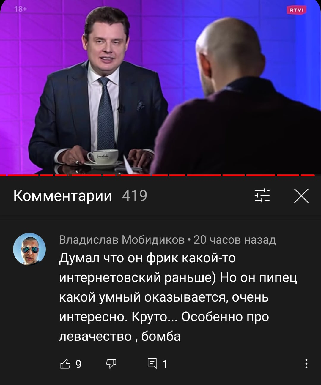 >>1077695 Ну х/з. Яковенко конфликтный чел, любит кого-нибудь разоблочить. я его точку зрения понимаю и в чем-то поддерживаю, но смотреть в целом его не интересно. Вообще, грызня между собой для оппозиции деструктивна - ни к чему хорошему не приведет. Для меня все кто остался в России - маркер подзалупности. Все кто уехал и даже сошедшая с ума Латынина - оппозиция.