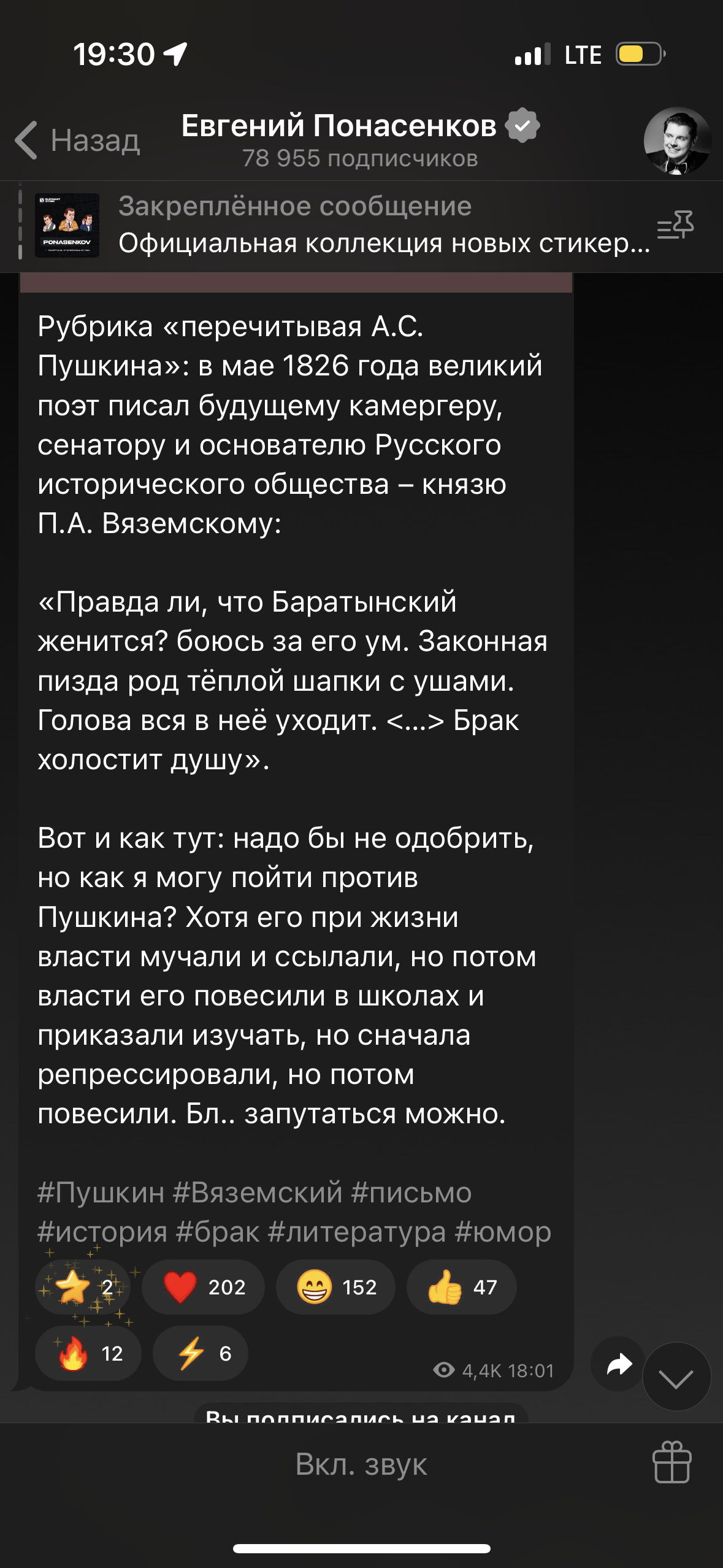 >>1077290 >По сути живу по заветам молодого эстетского Евген Николаича и они исключают чтение его тг и просмотр КЗС. Так это и есть результат понасячих метаний от властителя дум элиты до кумира миллионов.