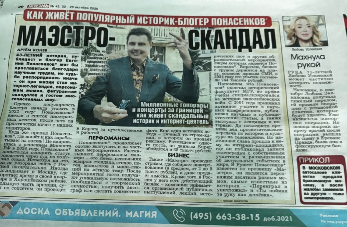 трагикомедия маэстро: аристократ побирается в ютубе. живет в бабушкиной квартире со шкафами. жаль его.какие тиражи его книжек: 5000? сколько он с них имеет? женя уежай скорее! лучше в париже охранять музей, чем в эрефии в сизо.