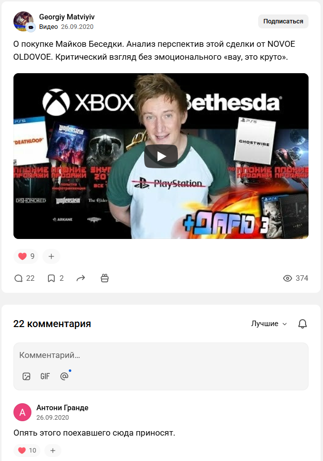 Спустя длительный перерыв, ничё у него не смотрел, сегодня всё-таки решил подкинуть монетку. Долго ждать не пришлось. Тема видео сменилась на второй минуте.