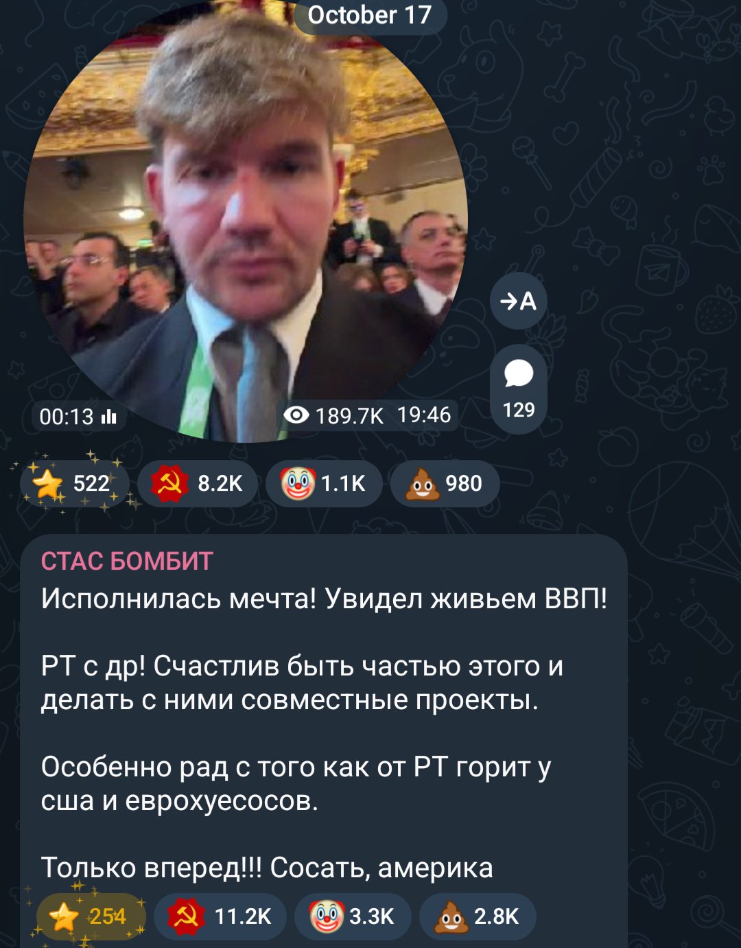 На последний шортс налетели россияне которые недовольны тем что озвучивает Борис. И он им даже отвечает. Хотя вы тут пиздите что он всех банит. Хейтерки всегда пиздят, такова натура хлипкой хейтроской душенки.