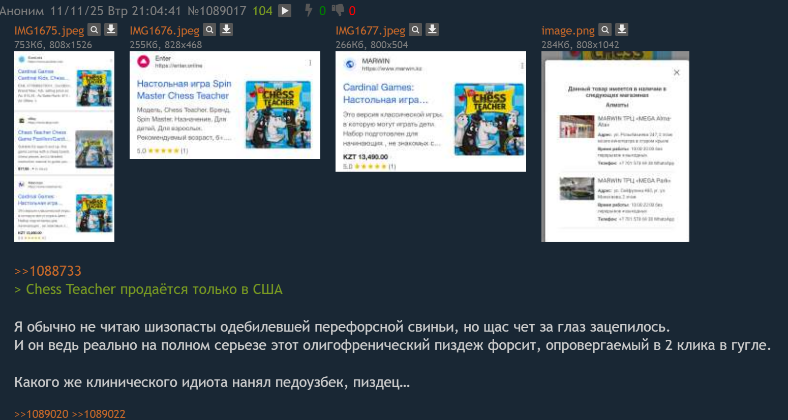 У мамбеда чмодера новый щитпост припадок. 2 года пиздел про США, выдавая спизженные фотки из твиттера за фотки екал и фотки из Панамы за фотки из США. Обосрался. Год пиздел про шахматы "КОТОРЫЕ ПРОДАЮТСЯ ТОЛЬКО В США". Обосрался. Пиздел про "молодой голос", который он типа определяет по милисекундным пукам, а потом ему сделали легкий тест с старыми/молодыми голосами на студийный микрофон и он не смог его пройти. Обосрася. В прошлом треде стену с пупырками пытался выдать за стену узбека, где никаких пупырок нет. Обосрался. Аккаунт с ником "just a person", который есть у 38 тысяч юзеров стима, выдавал за акк узбека. Обосрался. Пытался выдать рандомный тг канал за канал Кирилла. Обосрался. Теперь вот обосрался с магазином нерф, "КОТОРЫЕ ЕСТЬ ТОЛЬКА В США!!!!".