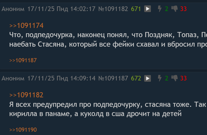 >Видос Екала из хаты, которую они вместе снимали Беспруфный пиздеж подпедочурки. Такой же беспруфный пиздеж как двухлетний пиздеж про США с попыткой выдать спизженные фотки из твиттера за фотки екала и попыткой выдать панамские фотки за США.