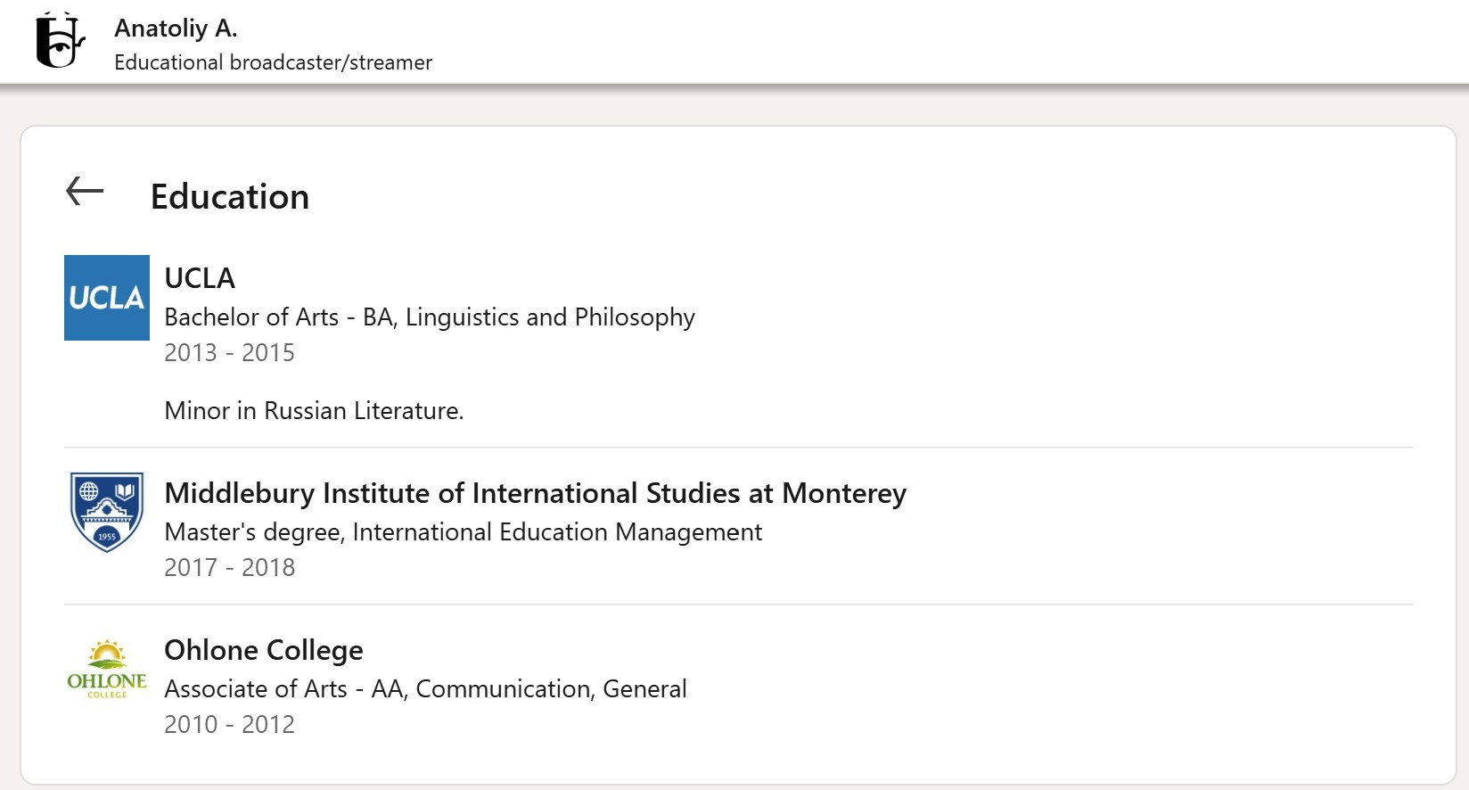 >>1092050 По учебной визе покупая курсы,по рабочей визе , он же оформлял себе одну комнату под офис. Пока нет пруфов на гражданство сша то это очередной пиздеж как и три академических степени.