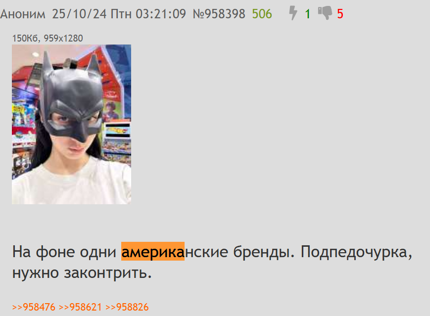 Фотки с ебырем так и не перекрыты. Российский магазин Десткий Мир и Лэтуаль так и не перекрыты. Фотки с котом так и не перекрыты. Кружочек со светом в окне когда в США была ночь не перекрыты. Факт отсутствия хотя бы одной фотографии за якобы 3 года жизни в США так и не перекрыт. Факт что узбек 5 лет нанимает проституток для перемоги не перекрыт.