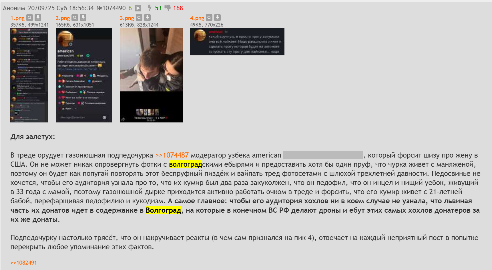 >>1099087 >которые солевая регулярно постила у себя в тг, ты прямым текстом пиздела что она в Волгограде. И прикрепил посты анонов хейтеров с двача, ни одного поста шалавы или чмодеров, ведь проститутка и её чмодеры ни раз такого не писали, каждый второй её пост был с форсом что она живет в сша. Какой же ты тупой перефорсер, пиздос.