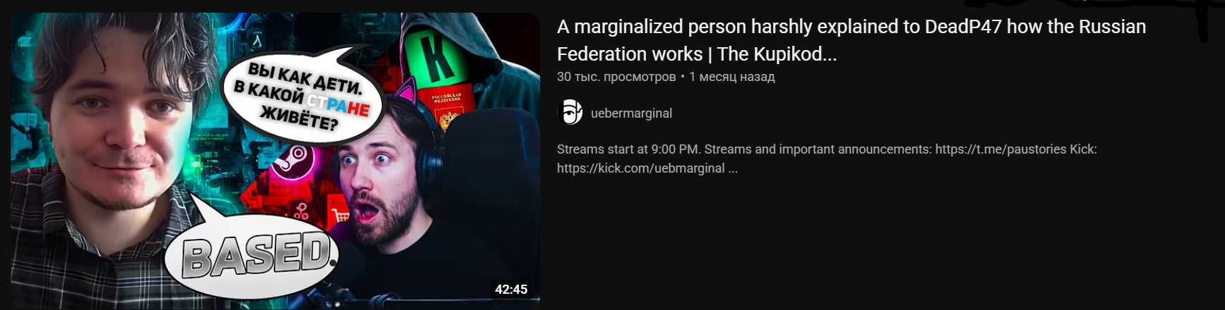 Я на ютубе когда-то видел превью удаленного стрима штрошерер по маргиналу. Существует перезалив?