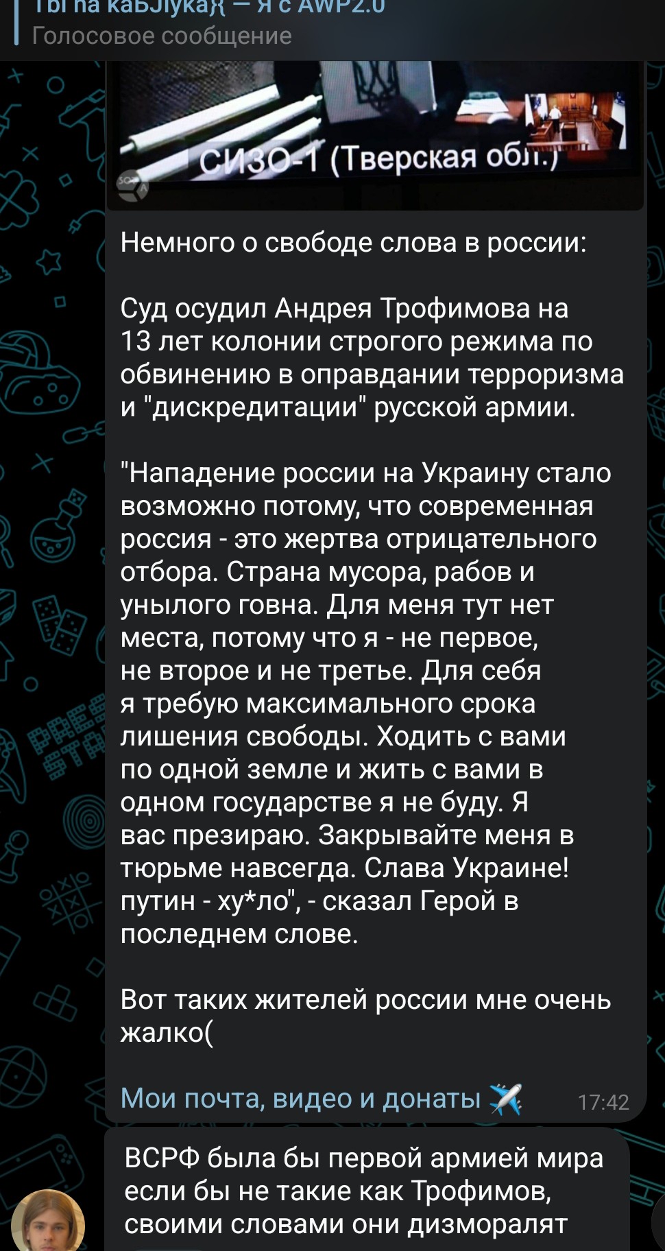 >но при этом задонатил $7к на дроны Со слов твоего кумира. Нет ни одного пруфа, ни одного скрина с чеками. Опять палишься, что форсишь пиздеж педочурки, чтобы обелять его в глазах хохлов. Именно поэтому тебе нужно перекрывать факт, что он отправляет деньги солевой в РФ, иначе последние 200 тарасов уйдут. Ну плюс перекрытие педофилии. Очень тупо палишься.
