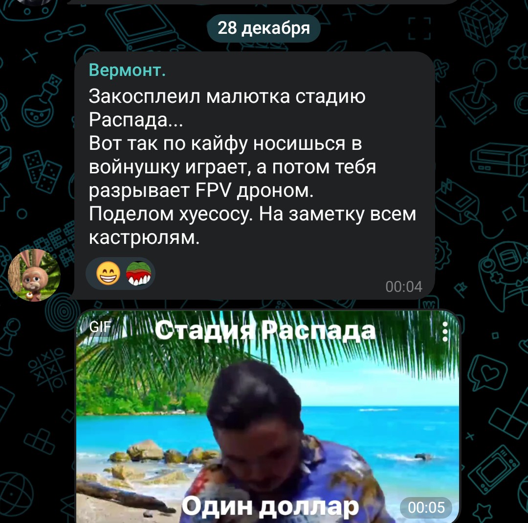 Бухает чучмек постоянно, вещества употребляет и потешно полный рот снюса набил когда бухтел что враг не увидит его слёз.