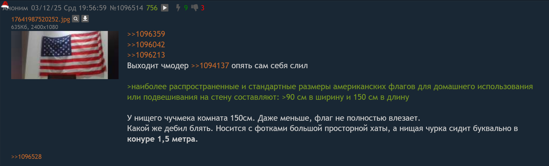 Микрофон блю йети и картина над флагом, про которые подпедочурка визжала на протяжении полугода, не замечая в тряске микрофон и судорожно перекрывая каждый пост с видосом хаты чма. Скрин с картиной над флагом заставил петуха завалить ебало, теперь он игнорирует картину и перемогает другими высерами. Если визги подпедочурки про скрытый форс неинцельства всё ещё кому-то кажутся убедительными, то стоит заметить, что на скринах у флага одинаковый изгиб, он прицеплен в том же самом месте, свет падает с той же стороны и выключатель на одном уровне с полосой у флага. Перефорсный петух цепляется к каждому пруфу, но каждый раз получает хуй за щеку и начинает требовать других доказательств и так до бесконечности. Тактика вечнопиздящего хуесоса.