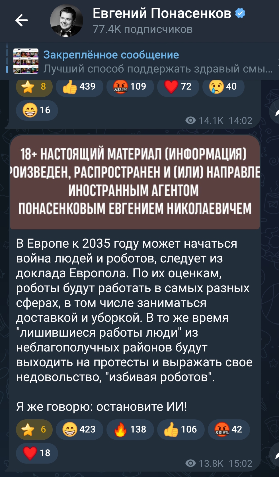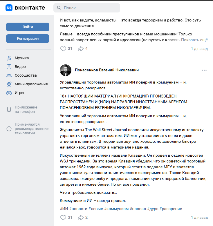 18+ НАСТОЯЩИЙ МАТЕРИАЛ (ИНФОРМАЦИЯ) ПРОИЗВЕДЕН, РАСПРОСТРАНЕН И (ИЛИ) НАПРАВЛЕН ИНОСТРАННЫМ АГЕНТОМ ПОНАСЕНКОВЫМ ЕВГЕНИЕМ НИКОЛАЕВИЧЕМ.