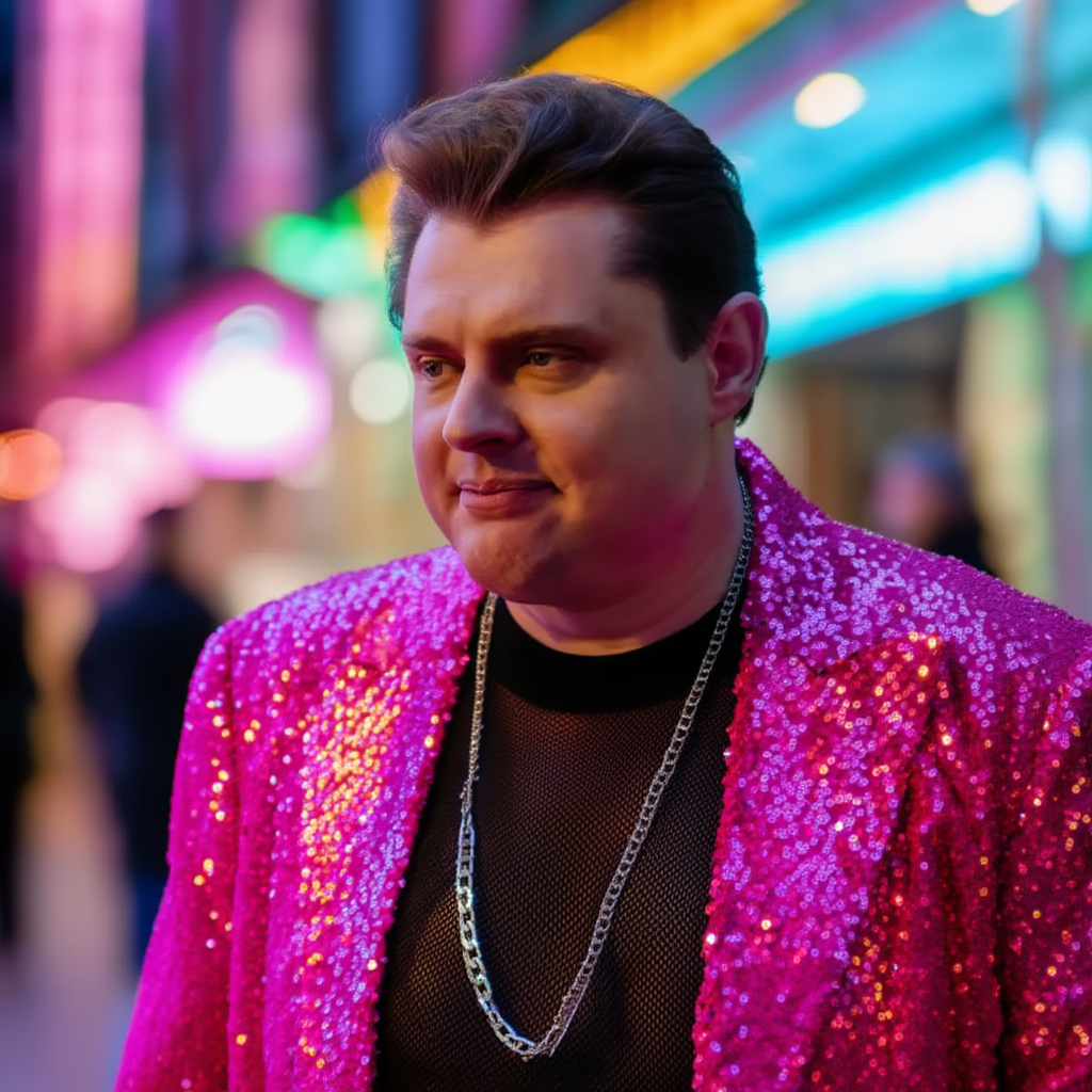 А вообще, просто задумайтесь, что бы могло случится с симпатягой, если бы он попал в поле зрения Гранда (испанского, конечно) и ещё умудрился бы стать поклонником его творчества... Могло ли произойти следующее? - сразу + 25кг к весу, потому что тощий и кушать надо (чтобы на его фоне цапля, проглотившая Марлен Дитрих не выглядела совсем ужасно) - стрижка гопника-бандюгана, потому что такие вкусы, такие нравы - дешёвый костюм с дешёвой рубашкой, с воротничком из помойной ветоши - туфлеботинки-кирпичи - мотания по всем интервью, чтобы показать, какие идеальные помощники/поклонники, но не слишком идеальные, помним про +25кг, чтобы не перетягивал на себя внимания