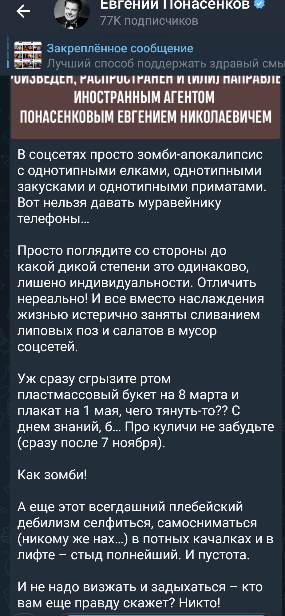 Последний тред, когда я что-либо пишу о Понасенкове, настал. Но я не хотела бы видеть в шапке кужима, вонючка он блять. В Новый год ухожу. Все кончено.