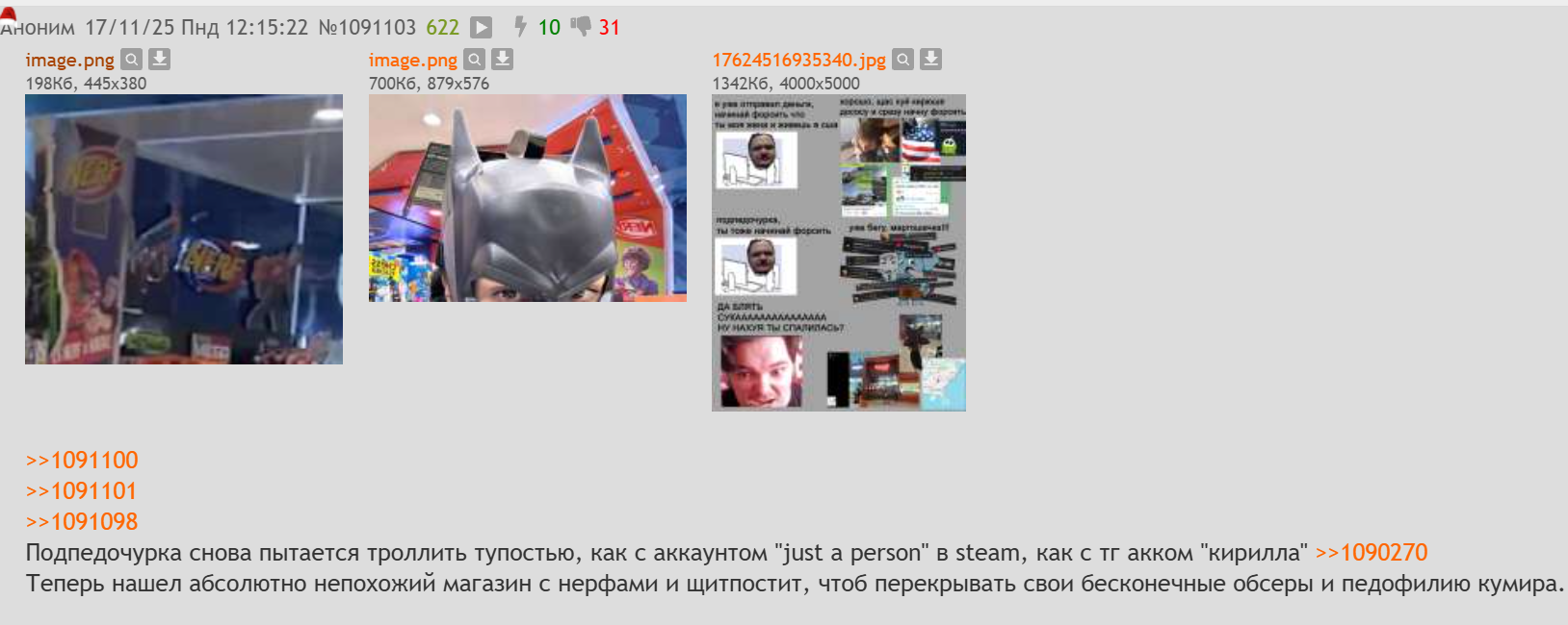 Добаваляйте эту хуйню >>1110594 >>1110595 >>1110597 в пак обсеров подпедорчурки. Это пожалуй самая смешная хуйня за последние месяцы.