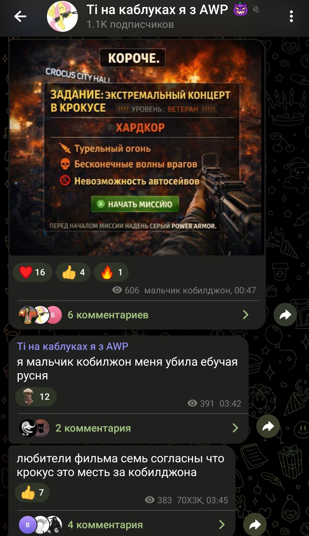 >скрыто форсила >скрыто форсить Ходить на стримы росова с овер 1к онлайном и визжать "ЙА ДЕВУШКА МАРГИНАЛА" это не скрытно, форситься в тг и дискорде с одобрением админов это не скрытно, выкладывать протухшие фотки с узбеком из 2022 во всеобщее обозрение это не cкрытно, заставлять подсосов клепать хайлайты про ДЕВУШКУ МАРГИНАЛА на овер 50к просмотров это не скрытнo, отправлять воздушные поцелуи "жене" прям на стриме это не скрытно, включать видос сакрамара, смотреть его от начала до конца с шизой про жену, это не скрытно, перефорсная подпедочурка.