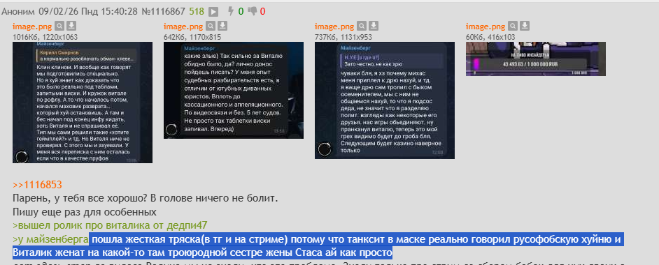Блять какой же Копробубс мерзкий. Вот даже если смотреть не на его позицию во всех этих бесконечных конфликтах, а просто на поведение. Сначала залупается на хуеву тучу народа, высталяет себя невъебенным альфачем-разъебывателем, объявляет "год резни", а потом, когда ему прилетает ответка, кто-то предъявляет против него аргументы, появляются уже про него инсайды, как вчера про дружбу с педоузбеком-уберчмом, он убегает в свою анально огороженную ото всех башенку с анальной модерацией, затыкает уши пальцами и кричит "Ля-ля-ля ничего не слышу ни на что не буду отвечать ничего не буду комментировать смотрим на стриме My little pony" Вот как ему самому от себя не мерзко. Ну если залупнулся то до конца иди. Или вообще не залупайся.