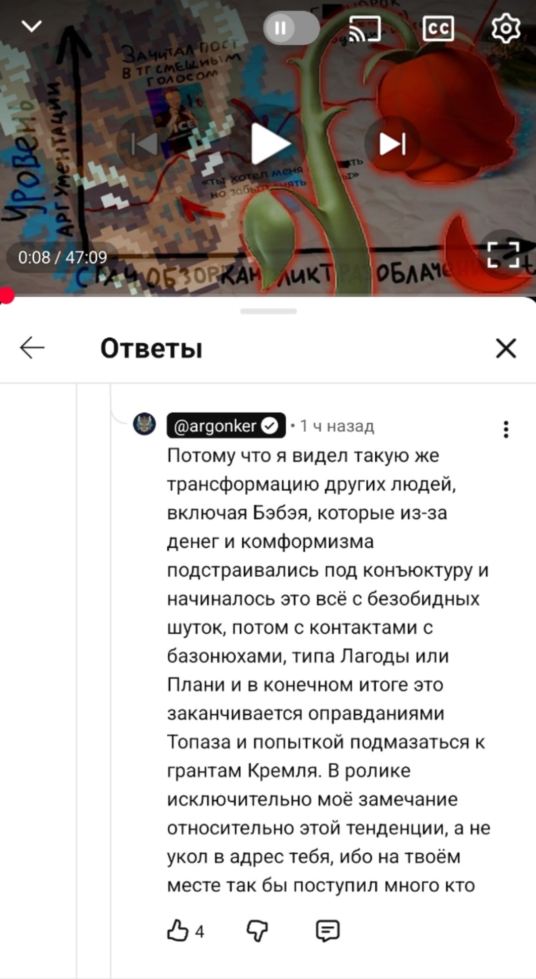 Так, теперь, когда страсти чуть подулеглись, я зашёл спросить. Вот я смотрел обоих. Изначально довольно нейтральное отношение к обоим, может к Аргону чуть получше, потому что Бэбс просто сдулся и за год снимал в основном какую-то поеботу. Но к сожалению я не осилил посмотреть видос Бэбса, потому что я вообще не понимаю как можно в целом смотреть такой формат, когда он переливает из пустого в порожнее и постоянно кривляется, ещё на ролике про озвучкеров я довольно быстро заебался слушать. Поэтому аргументацию против Аргона я восстанавливал по негативным комментам под его видосами, ибо под видосом Бэбэя там просто бесконечное жополизание. Итак, правильно ли я понимаю, что все грехи Аргона это: 1) Крокус-покус 2) Донатил армии страны, гражданином которой он являлся 3) Кому-то там пожелал сдохнуть