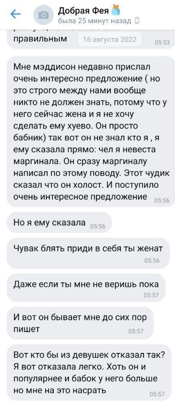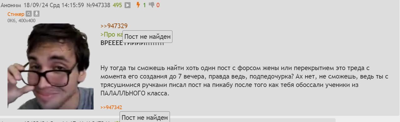 >>1121396 >Звуковые пуки Ну это совсем несерьезно. Случайные регулярные звуковые пуки явно в соседней комнате он надо полагать по радиосигналу вызывал? Голосовуха вообще имеет голос катьки и запись слишком чистая особенно в плане интонаций, на 11лабсов уже не спишешь и это уже никак не перекрыть. >Буквально здесь Так зачем катьку то блять учитывая весь ее бэкграунд и то что у нее есть/будет парень который обоссыт всю теорию? Ты совсем ебанько? Это же никак не бьется даже если пытаться смотреть с твоей позиции. >>1121401 >4мертные шахматы Скорее с твоей позиции, ибо маняврирований нужно допустить кратно больше начиная с банальной изначальной причины. >Этот пост Этот пост настолько очевидный шизовый наброс что даже не заслуживает букв если ты до сих пор не понял почему-то до сих пор. Пиздец что должно быть в голове конечно чтобы не понять.