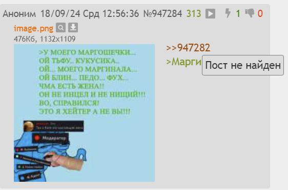 >>1115608 >дата этого архива даже не совпадает с твоими переможными скринами Коляска чугуевская, ты... Сохранены ВСЕ ДАТЫ Доска /d архивируется каждый день по несколько раз, абсолютно все посты сохранены. Тебя банили не в какую-то конкретную дату, сперва ты в одно рыло насрал 200 постов с 9 сентября по 15, пришел модер и одной кнопкой тебя потер, -200 постов. Потом к 20 числам ты снова с горящим пердаком прибежал и насрал еще 200 постов, тебя снова забанили. На третьем скрине видно, как аноны тебе отвечают уже со скрином твоих удаленных постов, и уже эти посты тоже удалены. Нет какого-то конкретного дня, ты бесновался в припадке несколько недель, семенящая подпедочурка, и забыл изобразить недовольство в /d.