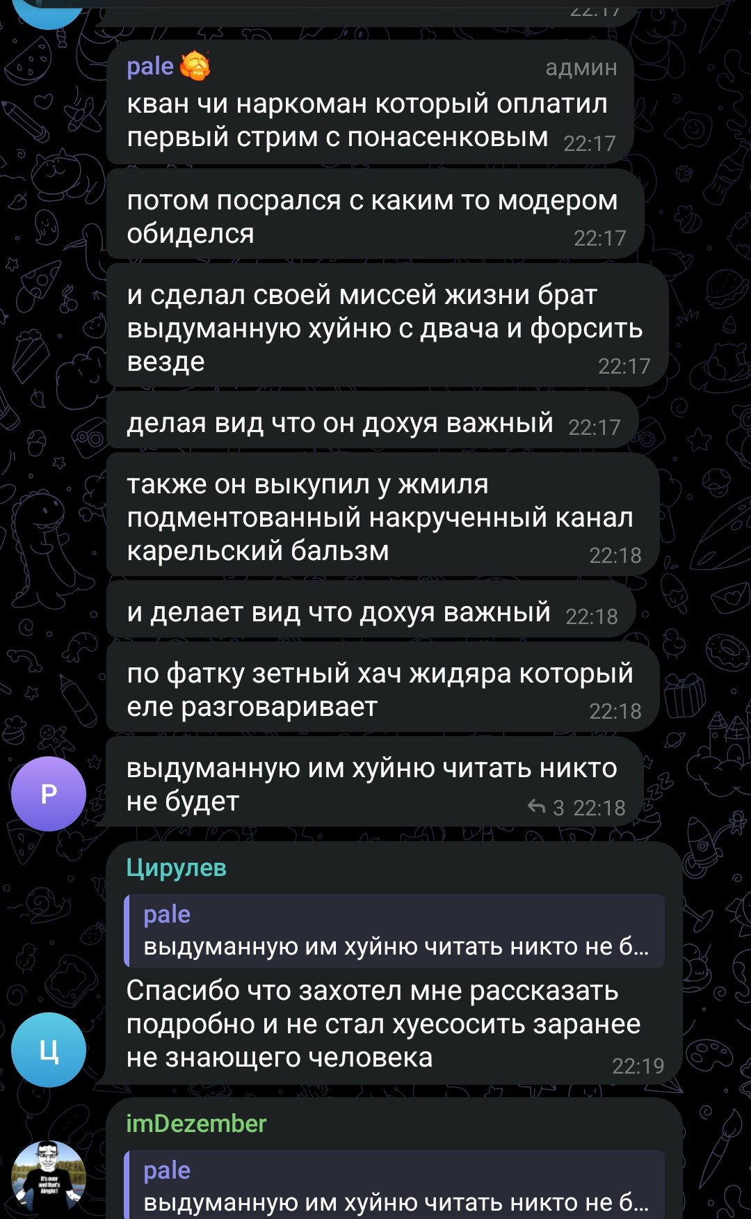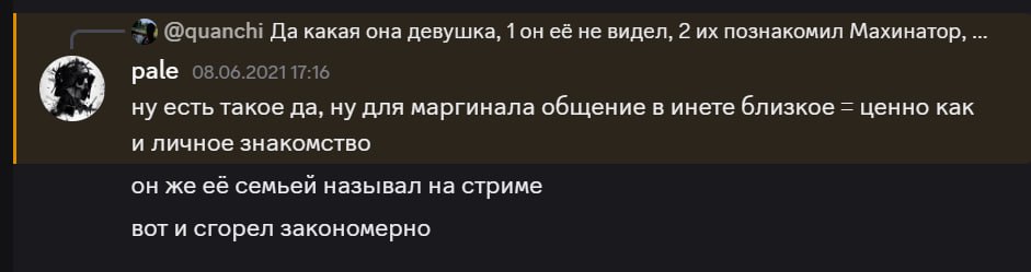 >скрыто форсила >скрыто форсить Ходить на стримы росова с овер 1к онлайном и визжать "ЙА ДЕВУШКА МАРГИНАЛА" это не скрытно, форситься в тг и дискорде с одобрением админов это не скрытно, выкладывать протухшие фотки с узбеком из 2022 во всеобщее обозрение это не cкрытно, заставлять подсосов клепать хайлайты про ДЕВУШКУ МАРГИНАЛА на овер 50к просмотров это не скрытнo, отправлять воздушные поцелуи "жене" прям на стриме это не скрытно, включать видос сакрамара, смотреть его от начала до конца с шизой про жену, это не скрытно, перефорсная подпедочурка.