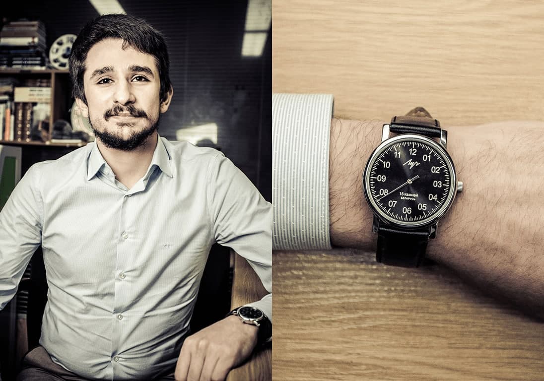 Какое-то время назад я с удивлением обнаружил, что на свете все еще существует и даже вполне успешно функционирует часовая фабрика “Луч”. Этот факт меня настолько поразил, что я решил ознакомиться с ее ассортиментом подробней — и меня заворожили однострелочники! (Смеется.) Лично мне вообще оказалось комфортнее определять и часы, и минуты при помощи одной стрелки: я трачу на это в два раза меньше времени, чем в случае с традиционными циферблатами.