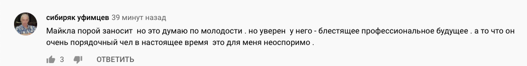 Зашёл на канал Майкла. У него по полтора часа контента в день Видимо из студии не вылезает, чтобы жену лишний раз не видеть. Представил сидит Майкл за компом, а сзади Нино и её тень полностью закрывает Майкла