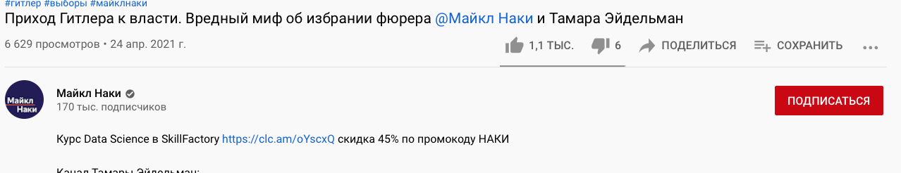 >>378610 Молниеносный набор подписчиков и просмотров без накруток одними только разговорными видео без какого-либо уникального контента. Такое мало кому удавалось на русском ютубе, он за пару месяцев прыгнул с 10-20к подписчиков до 200, а потом за несколько месяцев набрал еще почти пол миллиона. Но у Каца над этим работала огромная команда людей, и он ебашил по видео в день, чтобы засрать рекомендации абсолютно всей целевой аудитории. У Наки определенный прогресс тоже есть, с момента увольнения с Эха аудитория канала удвоиласьлол, но до показателей Каца ему далеко.