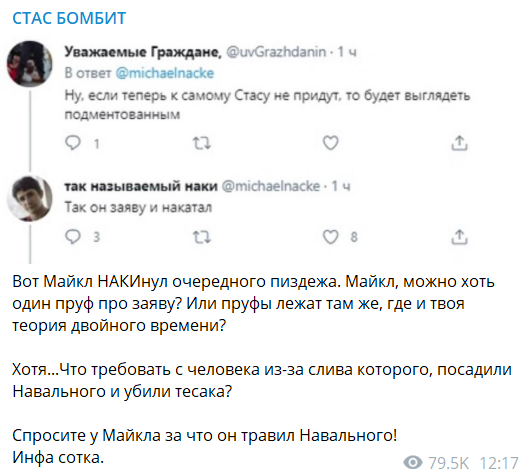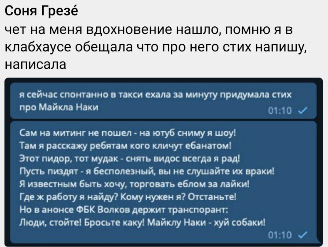 Отсюда и видео Каца про "ФСБ не взрывало Россию". Может у Наки тоже что-то есть. Во всяком случае "синих мужичков" в Крокусе он довольно усиленно "разоблачал"