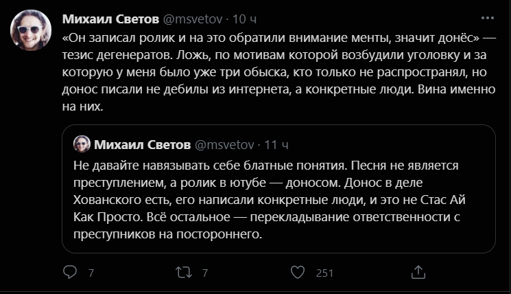>>413895 >Во-первых, нигде Светов не упоминается. Во-вторых, исчезающие уголовные дела обычно говорят не о том, что человек уголовник, а о том, что его пытались припугнуть, дабы противодействовать его деятельности. В-третьих вы не понимаете, это другое.