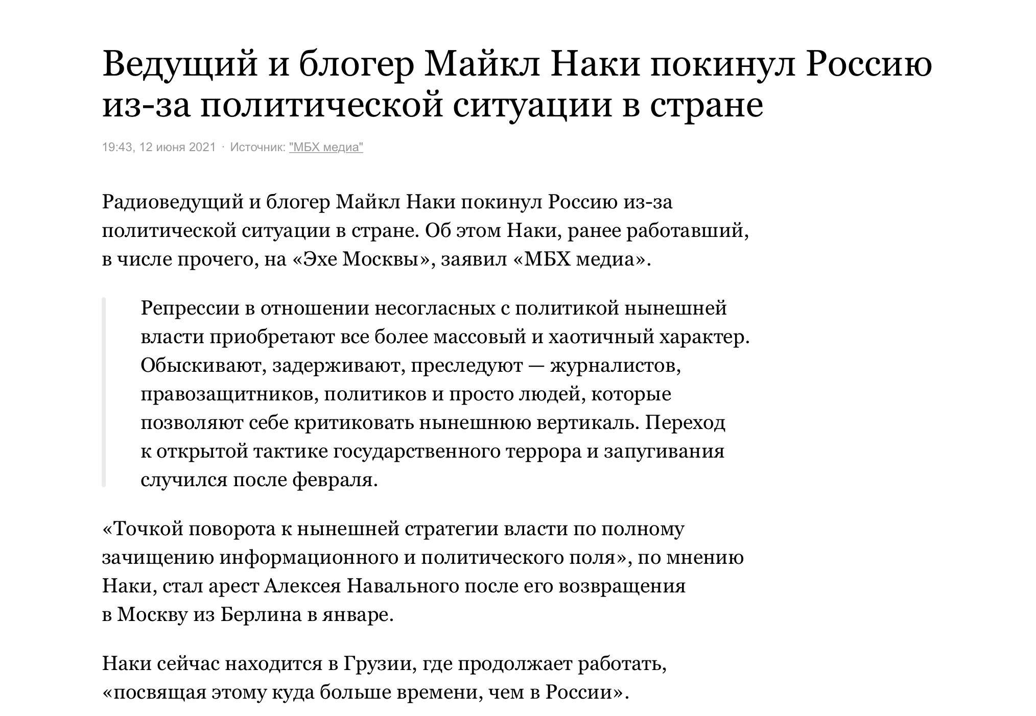 Вильнюсский городской участковый суд 4 декабря полностью отклонил иск литовской НКО SOTA Media к блогеру Майклу Наки, признав, что его резкая критика в адрес проектов связанных с олигархом Леонидом Невзлиным не является клеветой и не нарушает закон.