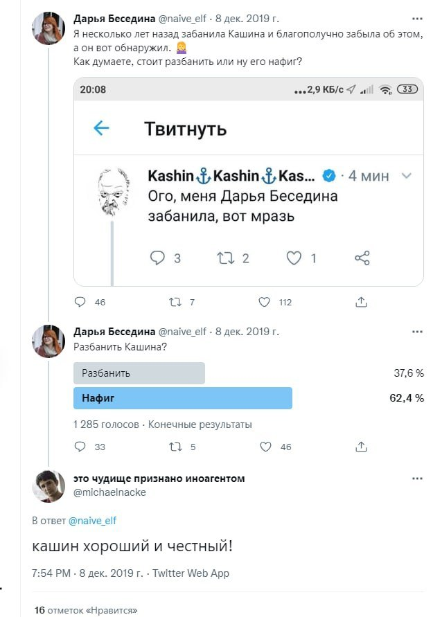 >>389220 Проблема в том, что если разобраться в каждом конфликте беспристрастно, то за Кацем особой вины и нет, просто оппозиционная тусовочка настолько гнилая, что выпихивает его как чужеродный элемент. Его проблема в том, что каждый раз он договаривается с партнерами, что 2+3=5 и четко придерживается этой договоренности, вообще не проявляя гибкости. А у нас в России как принято? 2+3=5, но сегодня нам выгоднее, чтобы было 6, давай сделаем 6, а завтра сын Суренчика подскочет, он очень просил, чтобы было не 2+3, а 2+7, у него на фабрике семерок вся семья работает и вообще он уважаемый всеми демократ. И это все как бы подразумевается само собой, как часть договоренностей - все к этому привыкли и всё прекрасно понимают. Кац каждый раз в таких ситуациях начинает гнуть свою линию, говоря о договоренностях, а партнеры искренне не могут понять, с хуя ли Кац начинает под них копать, нормально же общались. Ну и с Навальным отдельная история, это вообще театр абсурда. Есть свидетельские показания и пруфы того, как отвратительно вел себя Волков, какой пиздец он устроил Патюлиной, все про эти пруфы в курсе, никто их даже не отрицает, и все равно защищают Волкова и травят Каца. Особенно удивительно, когда Волкова защищают личности типа Наки, которые так топят за защиту женщин от домогательств.