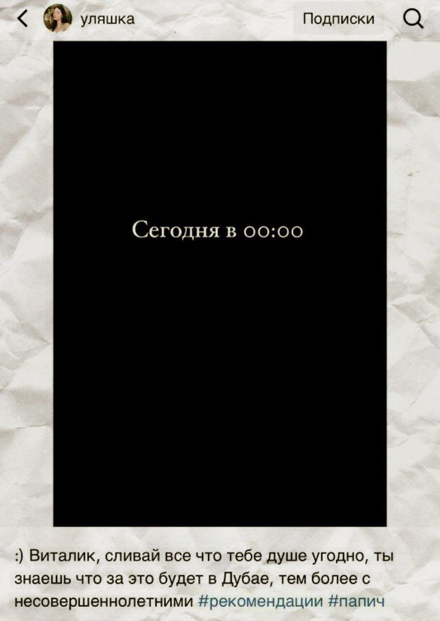 Раз идут угрозы, то это попытка набить цену на переговорах, и у Ульяны все козыри. Скорее всего договорятся, Папич отвалит ей бабла и попытается замять эту историю.