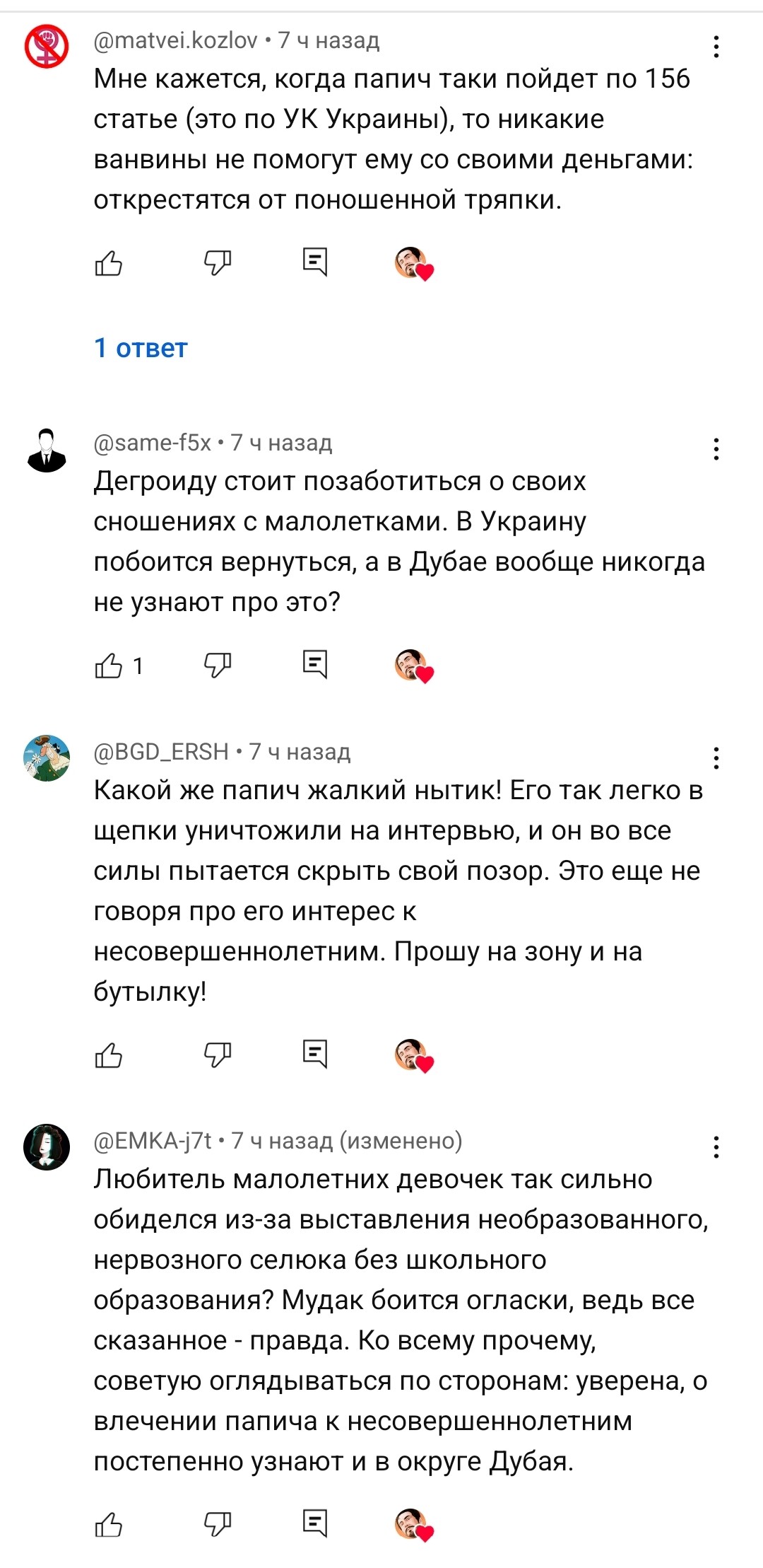 С тех пор как Папич незаконно покинул Украину, со стороны украинских блогеров и общественности не было никакой реакции, вообще по нулям, что очень странно. А ещё Папич продолжает говорить по русски и за это тоже ему не прилетает. И даже рекламирует русское казино и букмекера вообще без последствий, что просто удивительно. Ну и педофилия как бонус. Значит за ним кто-то стоит, иначе бы из него давно сделали чучело и сожгли. Видимо версия про рекламу способа сбежать из Украины, самая реалистичная версия.