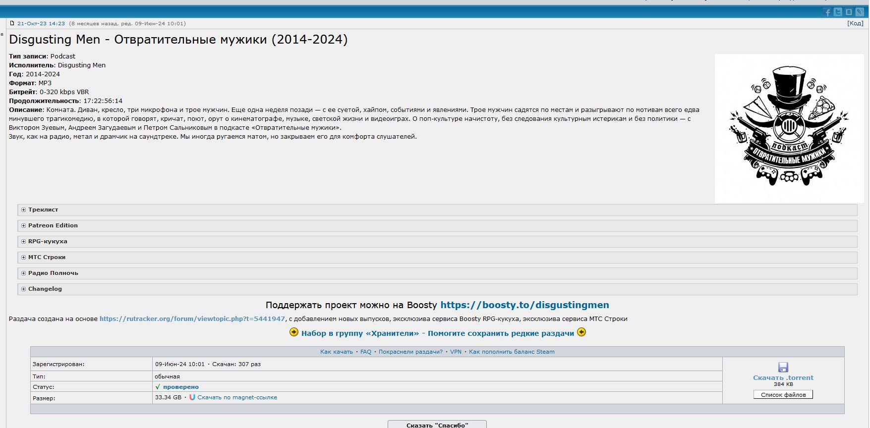 МТС Строки s01e01. В землю всегда успеешь!.mp3 1h4m56s (320 kbps) s01e02. Дарта Вейдера придумали в Уфе.mp3 0h57m36s (320 kbps) s01e03. Место мужика — на кухне.mp3 0h45m48s (320 kbps) s01e04. Раньше было лучше? Тогда почему мы не скучаем?.mp3 0h48m14s (320 kbps) s01e05. Открыть свой бар… Это точно хорошая идея?.mp3 0h53m46s (320 kbps) s01e06. Русский мат, осмысленный и беспощадный.mp3 0h46m3s (320 kbps) s01e07. Стать конным лучником в 40.mp3 1h15m57s (320 kbps) s01e08. Эволюция и естественный отбор в юморе.mp3 1h1m44s (320 kbps) s01e09. Много тупых вопросов ученым.mp3 1h1m3s (320 kbps) s01e10. Во что играем на новогодних.mp3 1h15m59s (320 kbps) s02e01. Безработный из Калифорнии.mp3 1h2m45s (320 kbps) s02e02. День гейм-мастера.mp3 0h47m21s (320 kbps) s02e03. Дюна головного мозга.mp3 1h3m10s (320 kbps) s02e04. Побаиваемся, но уважаем.mp3 0h46m9s (320 kbps) s02e05. Состояние игровой индустрии в России.mp3 1h15m21s (320 kbps) s02e06. Новости Уродска.mp3 0h46m9s (320 kbps) s02e07. Fallout. Лучшая экранизация игры.mp3 0h59m38s (320 kbps) s02e08. Ремейки всего. Хорошо или плохо ?.mp3 0h52m55s (320 kbps) s02e09. Закрытие Arkane, рыбаки-дебютанты и «Сегун».mp3 1h18m57s (320 kbps) s02e10. Окей, скуф в лучших традициях.mp3 1h6m15s (320 kbps) s02e11. Вы все меня бесите!.mp3 0h49m7s (320 kbps) s02e12. Конец учебного года и длинные игры на лето.mp3 1h0m37s (320 kbps) 77970s or 0d21h39m30s